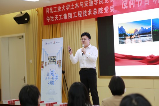 4月21日上午,河北工業大學土木與交通學院黨委、中冶天工集團工程技術總院黨委“浸潤書香 筑夢未來”世界讀書日校企黨建共建活動在河北工業大學圖書館舉行,圖為青年黨員朗讀經典書籍并分享讀書感悟。人民網 崔新耀攝