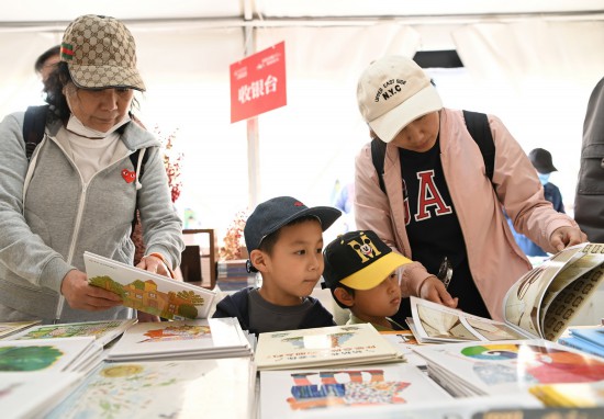 4月17日,2023北京書市,家長正帶著小朋友挑選圖書。人民網記者 于凱攝