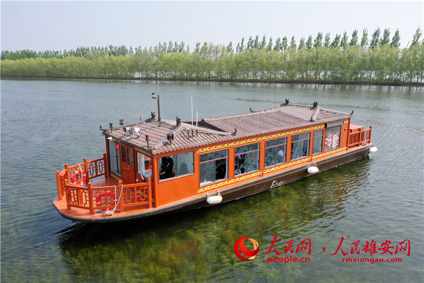圖為白洋淀“水上巴士”畫舫船。何希陽攝
