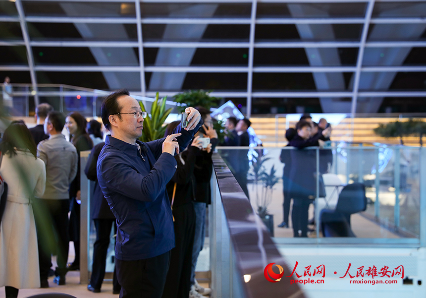 人民網雄安4月26日電?(宋燁文)4月25日晚,“城市之眼 洞見未來”活動在雄安城市計算中心成功舉辦。隨著“54321——”倒計時,燈光漸次亮起,建筑的拱形東立面與湖景水面中的倒影光影融合,共同構成了美麗、明亮、有靈氣的“雄安之眼”,雄安城市中心嶄新亮相。