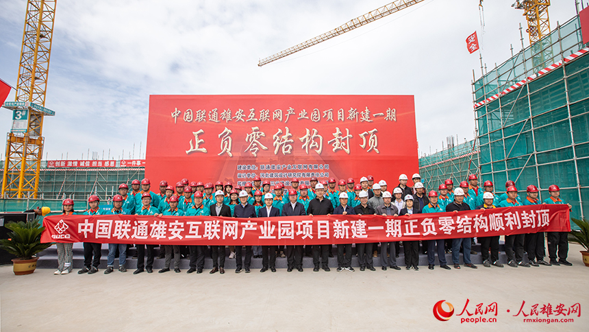 人民網雄安5月7日電 (李雪晴、楊華龍)5月6日上午中國聯通雄安互聯網產業園項目新建一期舉辦地下結構正負零封頂儀式。
