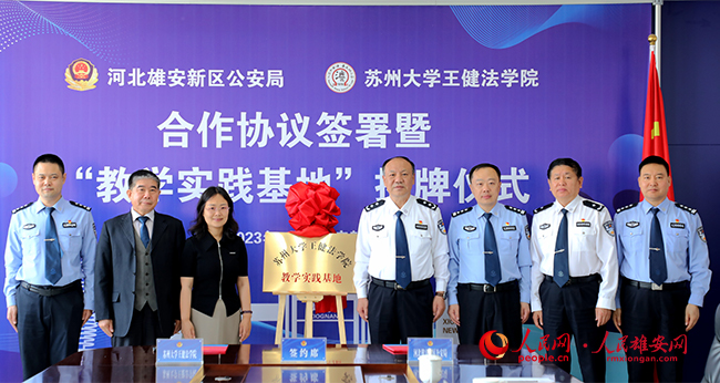 人民網雄安5月11日電 (宋燁文)日前,雄安新區公安局與蘇州大學王健法學院簽署合作協議,并在雄安新區公安局揭牌設立“蘇州大學王健法學院教學實踐基地”,深化校局合作。