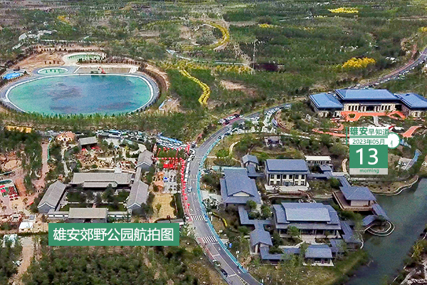 今天是2023年5月13日,星期六,天氣晴,15℃~28℃。在封面和大家見面的是雄安郊野公園航拍。
