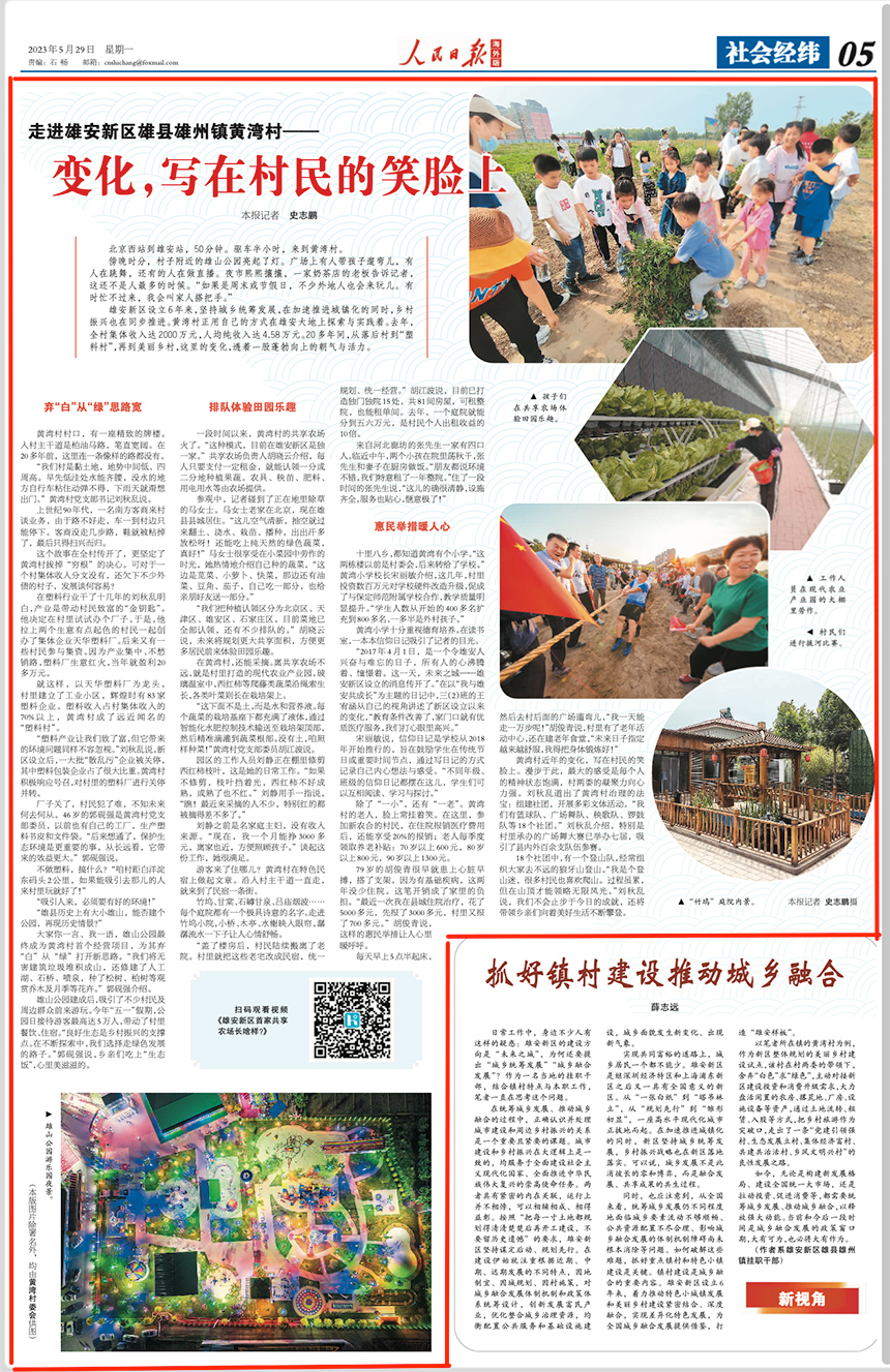 雄安新區設立6年來,堅持城鄉統籌發展,在加速推進城鎮化的同時,鄉村振興也在同步推進。黃灣村正用自己的方式在雄安大地上探索與實踐著。去年,全村集體收入達2000萬元,人均純收入達4.58萬元。20多年間,從落后村到“塑料村”,再到美麗鄉村,這里的變化,透著一股蓬勃向上的朝氣與活力。