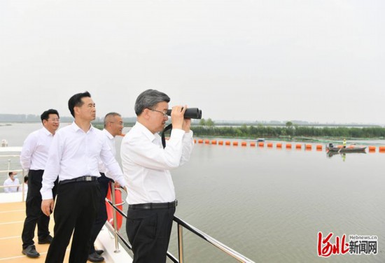 5月31日,省委書記、省人大常委會主任倪岳峰在白洋淀調研。 河北日報記者趙海江攝