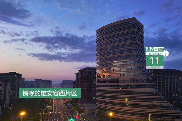 今天是2023年6月11日,星期日,天氣陰轉雷陣雨,18℃~31℃。在封面和大家見面的是傍晚的雄安容西片區。