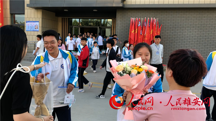 圖為高考結束后,家長手捧鮮花迎接考生。人民網記者 宋燁文攝