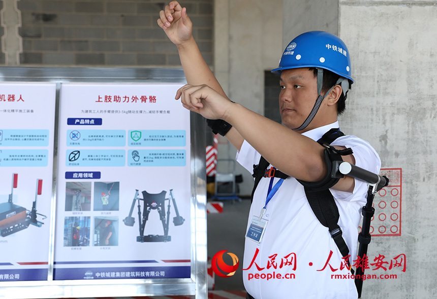 圖為項目上肢助力外骨骼機器人。該機器人采用碳纖維+航空鋁材質(zhì),僅有2公斤重,無需通過任何電力即可為使用者手臂提供3至5公斤的隨動支撐力,作業(yè)者在抬臂作業(yè)時會有手臂“懸浮”的“太空感”,長時間抬臂工作后減少手臂的疲勞感,同時降低肩關(guān)節(jié)損傷幾率。人民網(wǎng) 李兆民攝