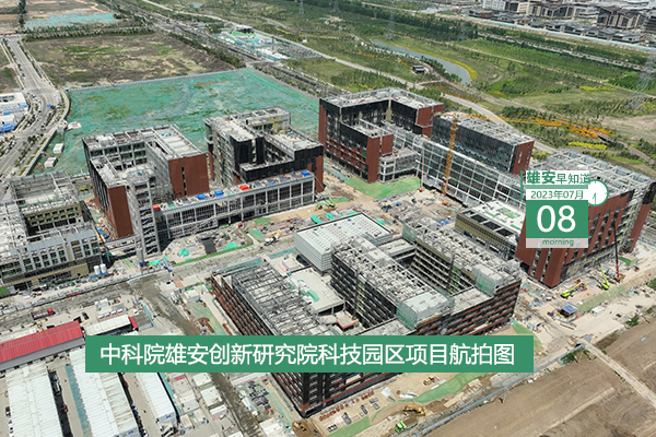 今天是2023年7月8日,星期六,天氣多云 ,24~37℃。在封面和大家見面的是中科院雄安創(chuàng)新研究院科技園區(qū)項(xiàng)目航拍圖。