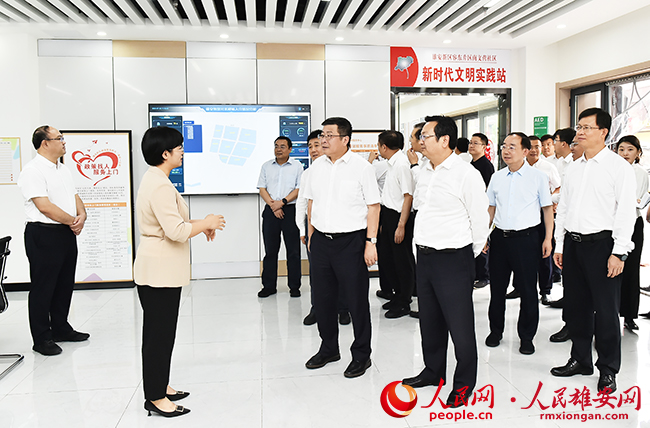北京城市副中心代表團一行來到雄安規劃展示中心,了解雄安新區整體規劃及建設情況;在容東片區城市建設現場,沿途步行、登高遠眺,感受宜業宜居的城市發展新脈搏;來到容東片區南文營社區,考察容東片區社區配套服務設施,了解城市基層治理工作情況;走進啟動區綜合服務中心,詳細了解啟動區總體規劃建設情況,調研北京非首都功能疏解項目最新進展和產業規劃布局;前往雄安城際站及國貿中心項目現場,實地察看雄安新區塔吊林立、熱火朝天的建設場面;來到安新縣白洋淀碼頭,乘船前往白洋淀生態清淤項目現場,考察白洋淀生態環境治理和保護等情況。