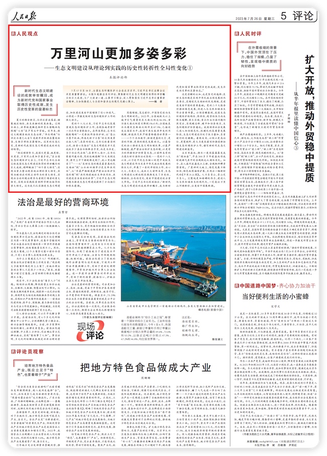 7月17日至18日,全國(guó)生態(tài)環(huán)境保護(hù)大會(huì)在北京召開,習(xí)近平總書記出席會(huì)議并發(fā)表重要講話。本版今起推出系列評(píng)論,聚焦新時(shí)代生態(tài)文明建設(shè)取得的舉世矚目的巨大成就,與廣大讀者一道,認(rèn)真學(xué)習(xí)領(lǐng)會(huì)、深入貫徹落實(shí)習(xí)近平總書記重要講話精神,為加快推進(jìn)人與自然和諧共生的現(xiàn)代化凝心聚力。