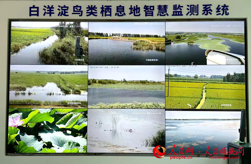 白洋淀鳥類棲息地指揮監(jiān)測系統(tǒng)大屏幕。安新縣自然資源局供圖