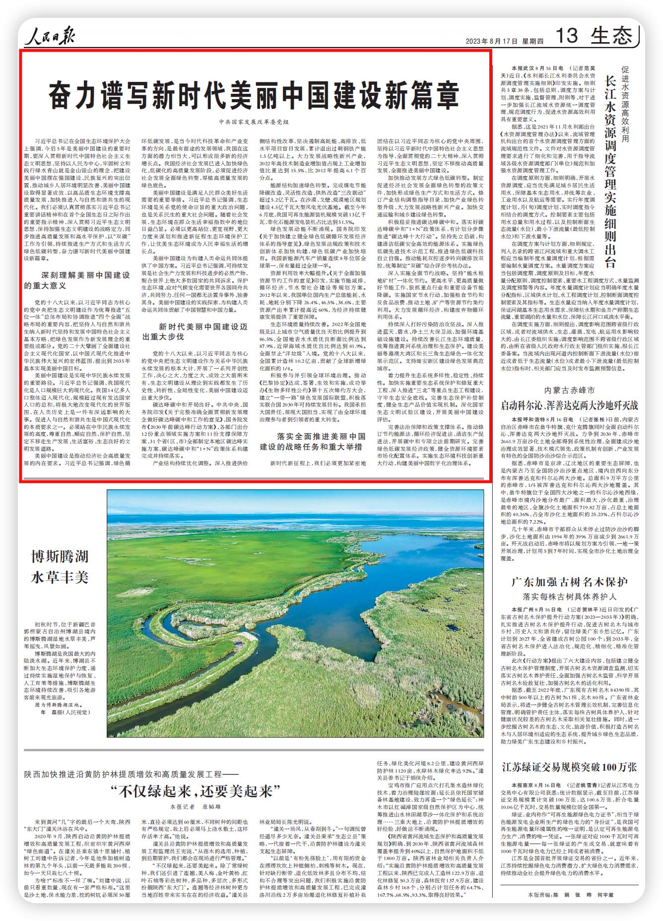 美麗中國建設是實現中華民族永續發展的重要路徑。習近平總書記強調,我國現代化是人口規模巨大的現代化。我國14億多人口整體邁入現代化,規模超過現有發達國家人口的總和,將極大地改變現代化的世界版圖,在人類歷史上是一件有深遠影響的大事。促進人與自然和諧共生是中國式現代化的本質要求之一。必須站在中華民族永續發展的高度,尊重自然、順應自然、保護自然,堅定不移走生產發展、生活富裕、生態良好的文明發展道路。