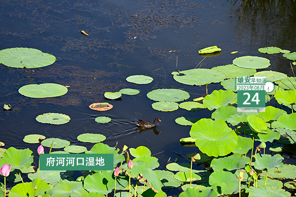 今天是2023年8月24日,星期四,天氣小雨,19℃~26℃。在封面和大家見面的是雄安府河河口濕地。