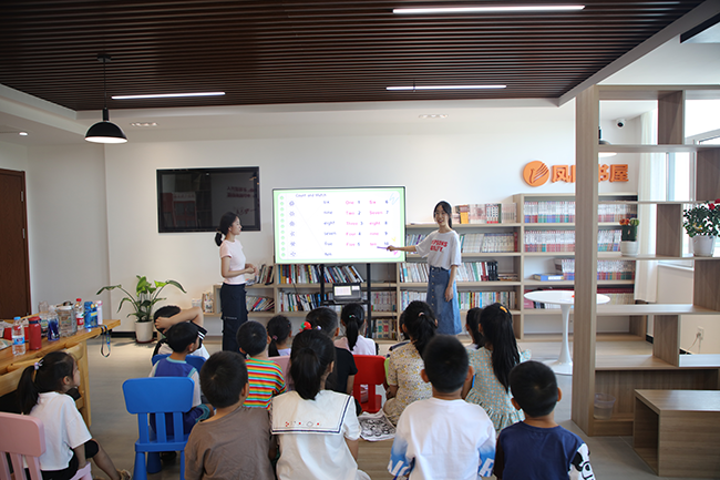 “小朋友們,伸出你們的小手,finger family手指家族要來嘍!”孩子們拍手互動(dòng)正在開心的上英語課。為了能讓孩子們愛上英語課,老師們絞盡腦汁總是變著花樣教學(xué),唱英文歌、一起跳舞、自己畫畫、貼卡片.......讓課堂充滿了活力。除了英語課,整個(gè)暑期公益課程還開設(shè)了繪畫課、口才課、急救知識、作業(yè)輔導(dǎo)等一系列特色課程。