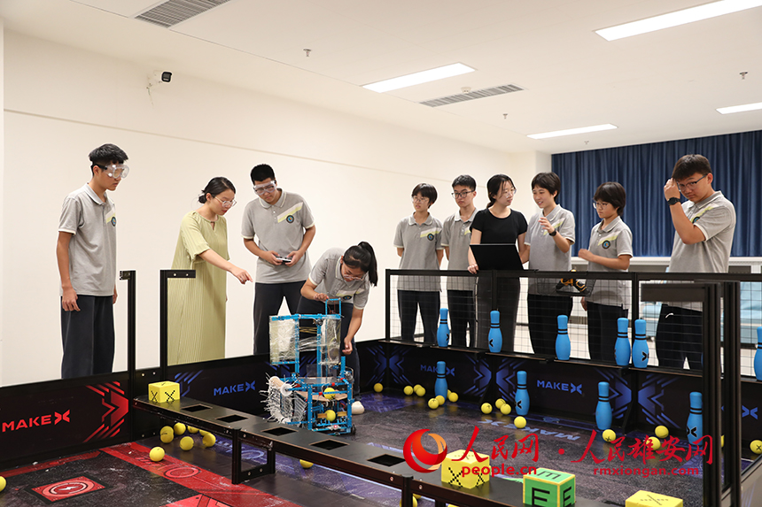 教師節前夕,北京市第八十中學雄安容東分校教師正輔導學生備戰全國機器人大賽。人民網 李兆民攝