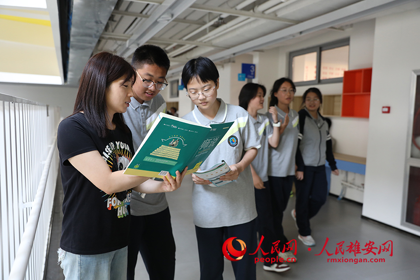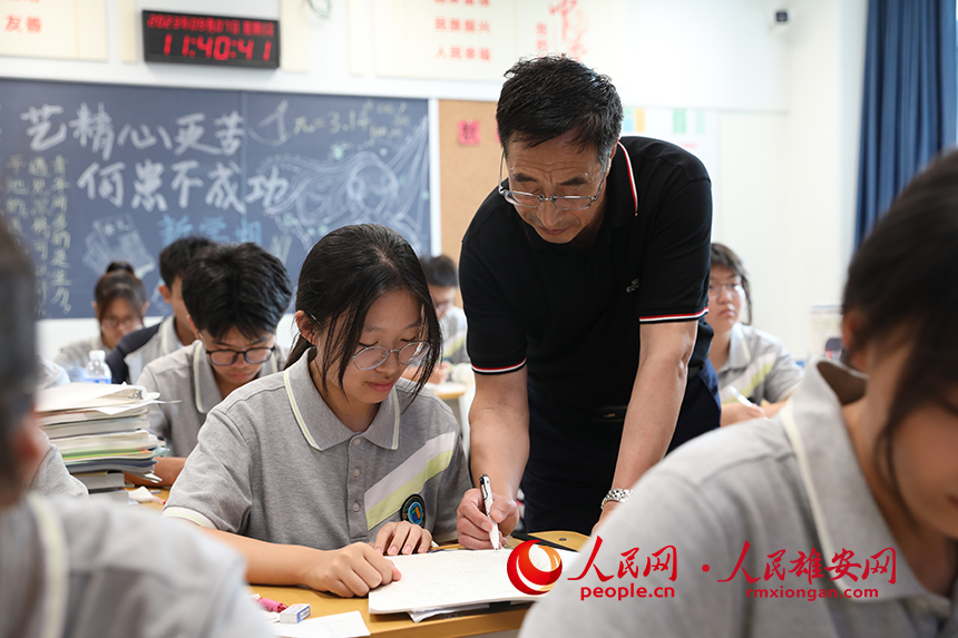 教師節前夕,北京市第八十中學雄安容東分校教師課間正輔導學生。人民網 李兆民攝