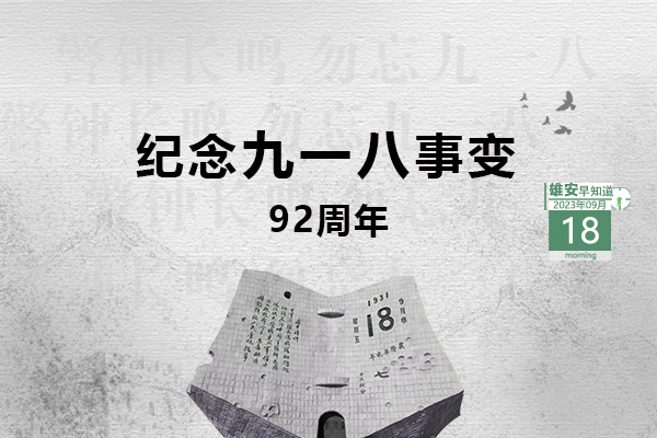 今天是2023年9月18日,星期一,天氣多云 ,18~30℃。1931年9月18日,“九一八事變”爆發,中國人民從此開始了艱苦卓絕的抗日戰爭。勿忘國恥,砥礪前行!