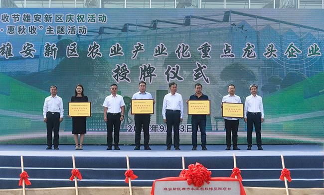 雄安新區(qū)農(nóng)業(yè)產(chǎn)業(yè)化重點(diǎn)龍頭企業(yè)授牌儀式現(xiàn)場(chǎng)。雄安新區(qū)公共服務(wù)局供圖