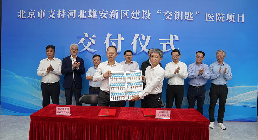 北京市支持河北雄安新區建設“交鑰匙”醫院項目交付儀式現場。北京建工供圖