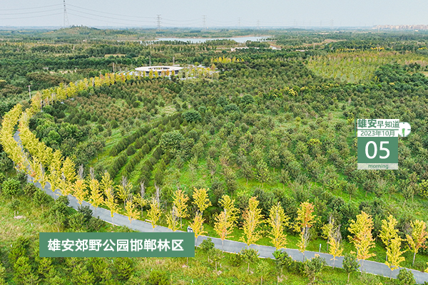 今天是2023年10月5日,星期四,天氣晴,12℃~22℃。在封面和您見面的是雄安郊野公園邯鄲林區。