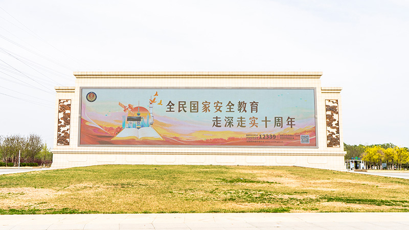 雄安新區三賢廣場大屏循環播放全民國家安全教育日宣傳海報、視頻。吳玉婷攝