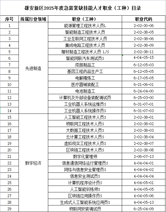 89個!雄安發布2025年度急需緊缺技能人才職業(工種)