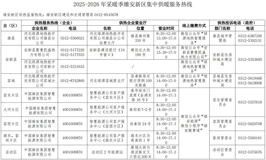 雄安早知道丨雄安公布集中供暖監督熱線;雄安這條通道施工斷交;多地提前供暖(2025.10.26)