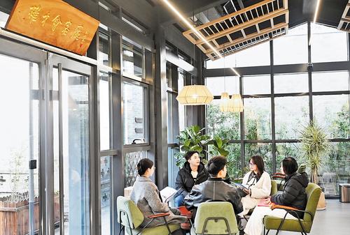11月11日,雄安新區(qū)雄才大廈“雄才會(huì)客廳”內(nèi),年輕人聚在一起分享工作感受。 本報(bào)記者劉光昱攝